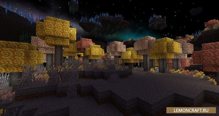 Мод на кольцо Эдема Eden Ring посвящен научной фантастике и основан на новом измерении, которое представляет из себя большое кольцо звезд кружащее вокруг газового гиганта - голубой планеты. В этом мире вы сможете исследовать 5 новых биомов, добыть 3 вида новой древесины, а огромное количество парящих островов с шикарным видом на голубое солнце не оставят вас равнодушным.